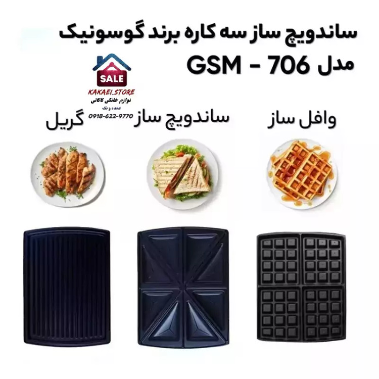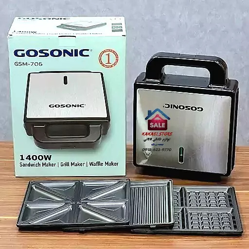 برند گوسونیک ✅توان: 1400W ✅طول سیم: 1M ✅تعداد صفحه: 6 عدد ✅تعداد خانه: 4 عدد ✅جنس بدنه: استیل و پلاستیک ✅جنس صفحات: تفلن نچسب ✅دستگیره عایق حرارت ✅نشانگر LED ✅صفحات جداشونده ✅قابلیت قفل درب ✅ترموستات ✅دو المنته ✅دارای 6 عدد صفحه شامل ✅دو عدد صفحه ساندویچ ساز ✅دو عدد صفحه وافل ساز ✅دو عدد صفحه گریل ✅قابلیت شستشو آسان صفحات ✅رنگ: استیل مشکی