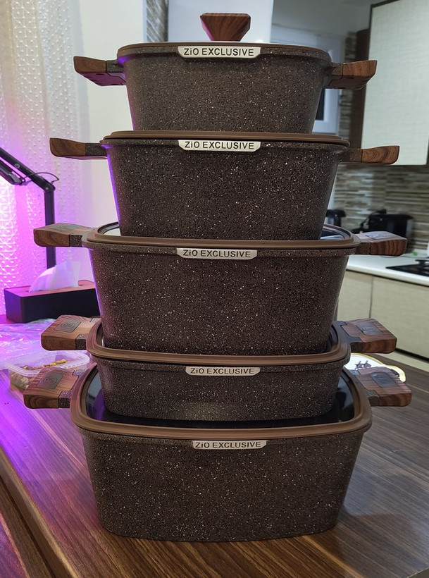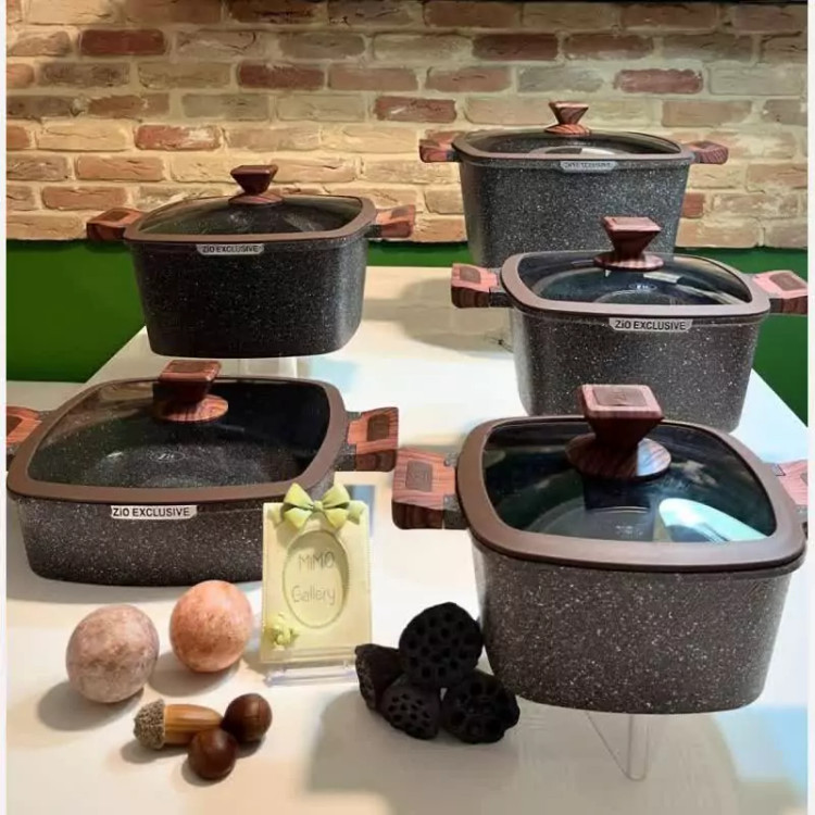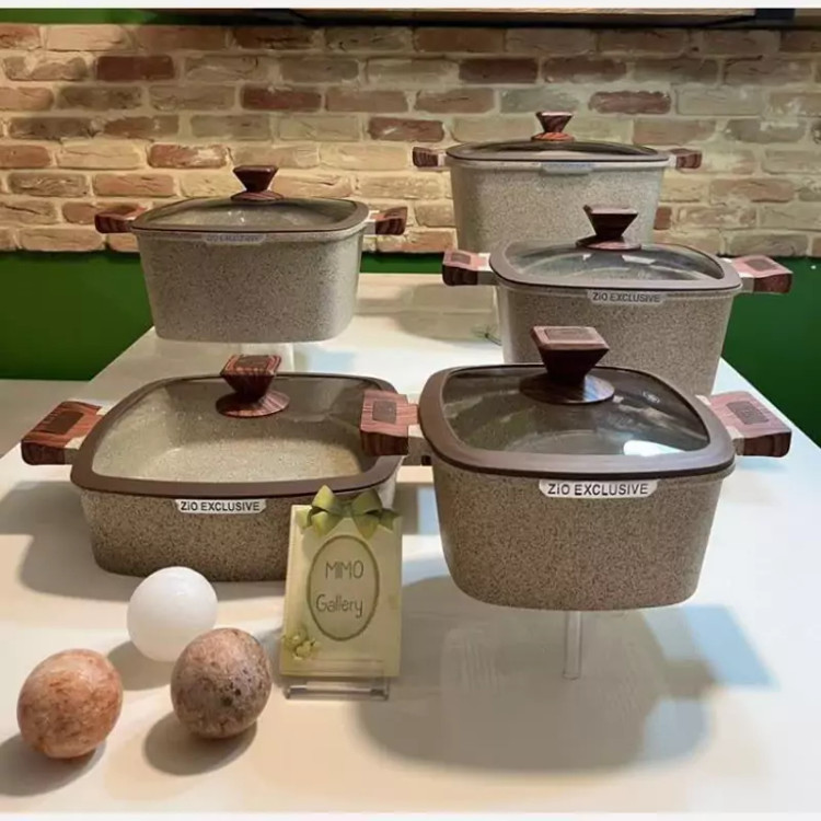 سرویس قابلمه زیو طرح جامبو مربعی 10 پارچه ZIO Z-8300 قدیم ZIO Z-7170 گرانیت سنگی ترکیه با کیفیت فوقالعاده