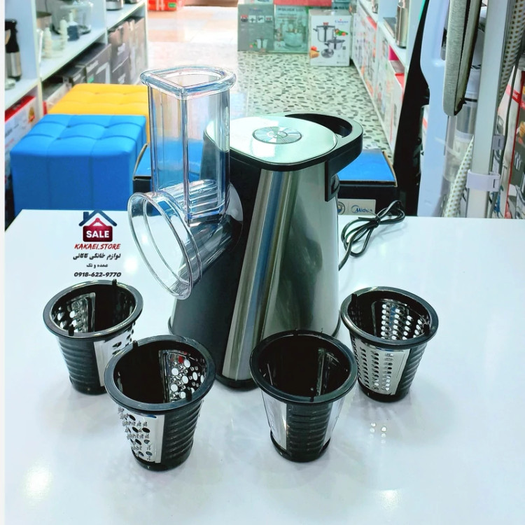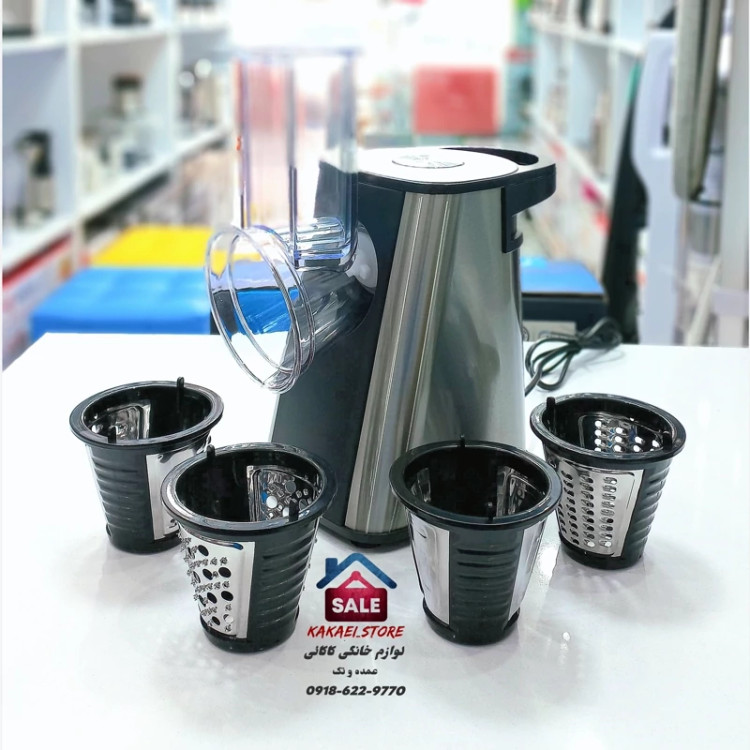 محفظه استیل ضد زنگ تمامی قطعات جداشدنی برای تمیز کردن آسان عملکرد بدون صدا 4 سری بدون صدا در حین کار پایه های لاستیکی ضد لغزش چند کاره با 4 مخروط برای خرد کردن درشت پاهای ضد لغزش قطعات جداشدنی محافظ بیش از حد گرما خرد کردن خوب برش های پیاز برش های سیب زمینی برش های هویج برش و له کردن سیب زمینی برش های سیر برش یخ Cocumber Sice AC 220-240 ولت، 50/60 هرتز قدرت 200 وات