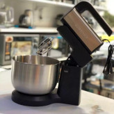 رنگ استیل برند گوسونیک توان مصرفی 300 وات تنظیم سرعت دارد - 5 سرعته قابلیت توربو دارد مونتاژ چین جنس بدنه ترکیب استیل ضد زنگ و پلاستیک جنس کاسه استیل ضد زنگ ظرفیت کاسه 3.5 لیتر قابلیت چرخش خودکار کاسه دارد قابلیت استفاده بدون کاسه دارد تعداد سری 2 عدد شامل همزن و خمیر زن جنس سری ها استیل ضد زنگ قابلیت استفاده در دو حالت دستی و ایستاده موتور تمام مسی دارای سیستم خنک کننده موتور قابلیت جداسازی کاسه و سری ها برای شستشو آسان دارای چراغ LED همزن گوسونیک مدل GHM-705 محصول برند گوسونیک ترکیه است. این همزن از نوع کاسه دار همراه با پایه است و کاربری آن نسبت به همزن های دستی آسان تر است. مواد غذایی در این نوع همزن ها به نسبت همزن های دستی ساده بسیار بهتر و سریع تر ترکیب می شوند. در این همزن علاوه بر حرکت پره ها و سر همزن، کاسه دستگاه حرکت چرخشی جداگانه دارد بنابراین ترکیب مواد بهتر انجام می شود. کاسه این دستگاه 3.5 لیتر گنجایش دارد که برای تهیه انواع خوراکی ها کاملاً جوابگو است. با این حال برخی مواقع ممکن است بخواهید مواد بسیار کمی را به صورت دستی با هم ترکیب کنید و از کاسه همزن استفاده نکنید.در این صورت می توانید سری همزن را به راحتی از پایه جدا کنید و از آن به عنوان همزن دستی استفاده کنید. این ویژگی همزن گوسونیک مدل GHM-705 بسیار قابل توجه است چرا که با خرید یک دستگاه، کارکرد دو دستگاه را خواهید داشت.سرعت چرخش پره های این همزن را می توانید با توجه به نیازتان در 5 سطح مختلف تنظیم کنید.دو عدد پره همزن و دو عدد پره خمیرزن از جنس استیل باعث می شوند بتوانید از این همزن برای تهیه انواع کیک، نان، شیرینی، دسر، خامه و … استفاده کنید.سیستم خنک کننده در این همزن از داغ شدن موتور دستگاه و آسیب دیدن آن جلوگیری می کند.یکی دیگر از ویژگی های قابل توجه این همزن قابلیت توربو آن است.با استفاده از این قابلیت می توانید در مواقع نیاز از حداکثر توان دستگاه استفاده کنید. لازم به ذکر است که قابلیت توربو از تمام توان موتور استفاده می کند بنابراین بهتر است فقط در مواقع نیاز از آن استفاده کنید چرا که با استفاده طولانی مدت ممکن است به موتور آسیب برساند. با استفاده از دکمه Eject این دستگاه می توانید پره های همزن و خمیرزن را به راحتی از آن جدا کنید. پره ها و کاسه همزن به راحتی از بدنه آن جدا می شوند و می توانید پس از شست و شو مجدداً آن ها را به دستگاه متصل کنید.