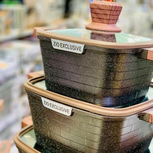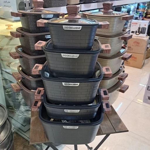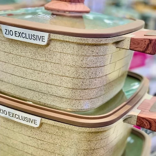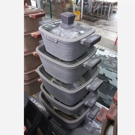 سرویس قابلمه زیو طرح جامبو مربعی 10 پارچه طرح آجری مدل ZCS-8560 گرانیت سنگی ترکیه با کیفیت فوقالعاده