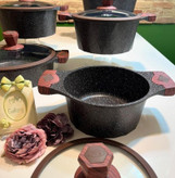 این سرویس قابلمه دارای 4 قابلمه در 4 سایز 20، 24، 28 و 32 سانتیمتر و البته یک تابه به سایز 28 سانتیمتر است که نیازهای هر خانواده ای را با راحتی پاسخگو است. آلومینیوم در بعد توزیع گرما بهترین است. اکثریت قریب به اتفاق ظروفی از جنس آلومینیوم دارای نوعی روکش، لعابی یا نچسب هستند که تمیز کردن آن را آسانتر کند.