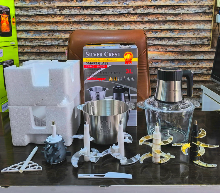 دیگر نگران خرد کردن سبزیجات،گوشت ، مرغ ، پیاز، سیب زمینی و ..... نباشید. در فروشگاه لوازم خانگی جوانرود حراج خرد کن موفق برند سیلور کرست با داشتن توان قدرتی 1000 وات یکی از قدرتمند ترین خردکن های حال حاضر دنیا می باشد. خردکن سیلور کرست امکان خرد کردن سبزیجات،گوشت ، مرغ ، پیاز، سیب زمینی .... را به راحتی و در مدت زمان بسیار کوتاه برای مصرف کننده فراهم میکند. با داشتن خرد کن سیلور کرست فروشگاه جوانرود حراج دیگر روش سنتی خرد کردن با چاقو را کنار بگذارید و با خیال راحت و در سریع ترین زمان مواد مورد نیاز خود را خرد کنید. خرد کن دوکاسه سیلور کرست از بهترین مواد اولیه و با بهترین کیفیت ساخته شده است که یک عمر با خیال راحت با آن کار خواهید کرد. این دستگاه خرد کن دارای دکمه فشاری برای کار کردن دستگاه می باشد و مجهز به سیستم ترموستات می باشد. خردکن سیلور کرست دارای 5 دور سرعتی کند و تند می باشد. شما عزیزان با توبه به نوع نیازتون به راحتی نسبت به تغییر حالات سرعتی می توانید اقدام نمایید. جنس بدنه ی خرد کن از پیرکس شیشه ای می باشد و تمیز کردن آن راحت است و در مرور زمان زرد نخواهد شد.جنس درپوش خردکن از پلاستیک مقاوم می باشد.ظرفیت ظرف این دستگاه خردکن3 لیتر می باشد که اندازه استانداردی برای مصرف یک خانواده می باشد. جنس ظرف این دستگاه از پیرکس شیشه ای مقاوم است و در برابر ضربات فیزیکی احتمالی کاملا مقاوم می باشد و همچنین مواد در حال خرد شدن نیز در این پیرکس کاملا قابل مشاهده می باشد. این دستگاه دارای قطع کن حرارتی می باشد تا چنانچه موتور دستگاه بیش از حد داغ شود به طور اتوماتیک دستگاه خاموش شود. همچنین خردکن سیلور کرست دارای قفل ایمنی می باشد و تا زمانی که دستگاه روشن است،اجازه باز کردن ظرف را از دستگاه نداشته باشید