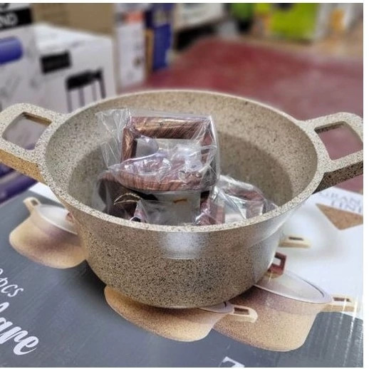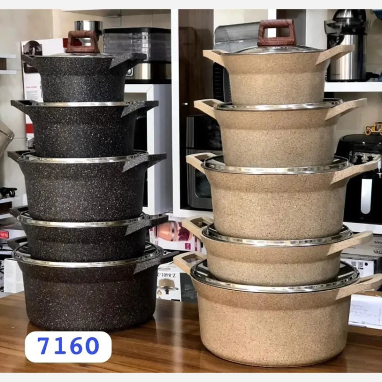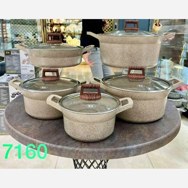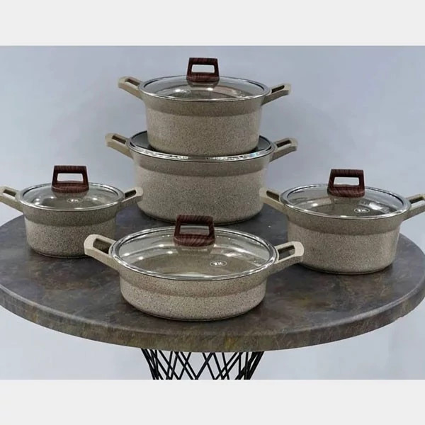 در دو رنگ کرمی و قهوهای سوخته تعداد پارچه 10 پارچه سایز قابلمهها : 20 – 24 – 28 – 32 سایز تابه : 28 جنس روکش گرانیت (ماربل) ساختار بدنه آلومینیوم خالص 98.5 درصدی ضخامت بدنه 4 میلی متر کشور مبدا برند ترکیه جنس شیشه پیرکس دسته بـاکالیت نسوز ضخامت ظروف 4 میلی متر دسته متصل به بدنه (یکدست) سرویس قابلمه 10پارچه برند زیو مدل سلطان ( Z-7160 ) از جنس فولاد ضد زنگ بوده که دارای کیفیت بالا همراه با طراحی و ساخت ظاهری بسیار دلفریب و زیباست این سرویس 10 پارچه شامل 4 قابلمه بوده که دارای سایزهای 20 – 24 – 28 – 32 می باشد و نیز تابهای به سایز داراست که همه نیازهای شما را به طور کامل رفع میکند و نیز لازم است اشاره کنم که درب همه این سرویس از جنس شیشه پیرکس بوده و شما به راحتی میتوانید وضعیت پخت غذا را بررسی نمایید. البته دستههای این سرویس زیبا بوده و دارای عایق می باشند سرویس به دلیل دارا بودن بدنهای از جنس آلومینیوم خالص وزنی نسبتا سبک بوده که زیبایی خاصی به این سرویس داده است و البته دارای روکش گرانیتی بوده که زیبایی آن دو چندان کرده است البته نچسب است و شما میتوانید با خیال راحت انواع غذاهای سرخ کردنی را در این سرویس تهیه نمایید.