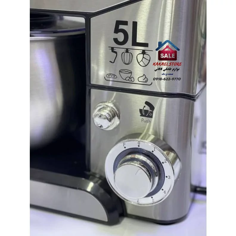 جنس کاسه استیل نوع کاسه متحرک تعداد پرههای همزن سه عدد تعداد تنظیمات سرعت شش سرعته تعداد سری سه عدد سایر توضیحات نوع موتور : گربکسی ، ظرفیت : 5 لیتر ، تعداد پره ها : 3 عدد ، جنس کاسه : استیل ضدزنگ ، توان مصرفی : 1000 وات ، جنس بدنه : استیل ضد زنگ ، کارکرد ها : خمیرزن ، وزدهنده و همزن ، قفل دستی بازویی دارد ، زاویه باز شدن بازو 35 درجه ، تنظیم سرعت در شش حالت + پالس ، مجهز به پایه های مکشی ضد لغزش قابلیتها قابلیت شستشوی قطعات در ماشین ظرفشویی ظرفیت کاسه 5 لیتر حداکثر توان مصرفی 1000 وات سایر اقلام همراه محصول دارای سه سری بالونی خامه زن و پدالی مخلوط کن و خمیرزن قلابی شکل ، درب پوشش کاسه همزن ، دفترچه راهنما