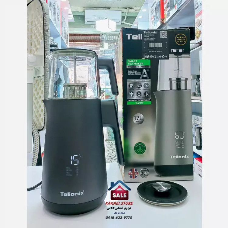 اولین چیزی که از این چای ساز، به چشم ما می خورد، طراحی ظاهری بسیار شیک و مدرن این چای ساز است. وجود این دستگاه بر روی کانتر و یا اپن خانه تان زیبایی خاصی را به دور و اطراف خانه و آشپزخانه تان می بخشد.جنس بدنه ی کتری این محصول استیل ضد زنگ بوده و مقاومت بسیار بالایی را در برابر دما، رطوبت و ضربه دارد.جنس قوری آن نیز از شیشه ی پیرکس بوده که زیبایی دستگاه را چندین برابر کرده است.ظرفیت کتری این محصول 1.7 لیتر و حجم قوری آن 800 میلی لیتر است. همچنین کتری این دستگاه بر روی پایه ی خود قابلیت چرخش 360 درجه را نیز دارد. کتری به صورت دو جداره ساخته شده که باعث میشود گرما به بدنه منتقل نگردد. صفحه نمایش بر روی بدنه کتری و به صورتی است که به محض روشن شدن دستگاه صفحه قابل روئت میشود . کتری این چایساز با داشتن ظاهری بسیار زیبا، بدنه دوجداره استیل و صفحه نمایش مخفی تعبیه شده روی آن کیفیت بسیار بالایی نیز دارد. چایساز تلیونیکس دارای قوری پیرکس با تفاله گیر آسان سوری است. این چایساز دارای المنت استریکس است. مشخصات فنی چای ساز تلیونیکس مدل 5004 توان مصرفی 1500 وات چرخش 360 درجه کتری برقی دو جداره استیل پنل لمسی دیجیتال صفحه نمایش دارای 5 برنامه پیشفرض قوری پیرکس با فیلتر آسانسوری قابلیت گرم نگه دارندگی دارای المنت استریکس