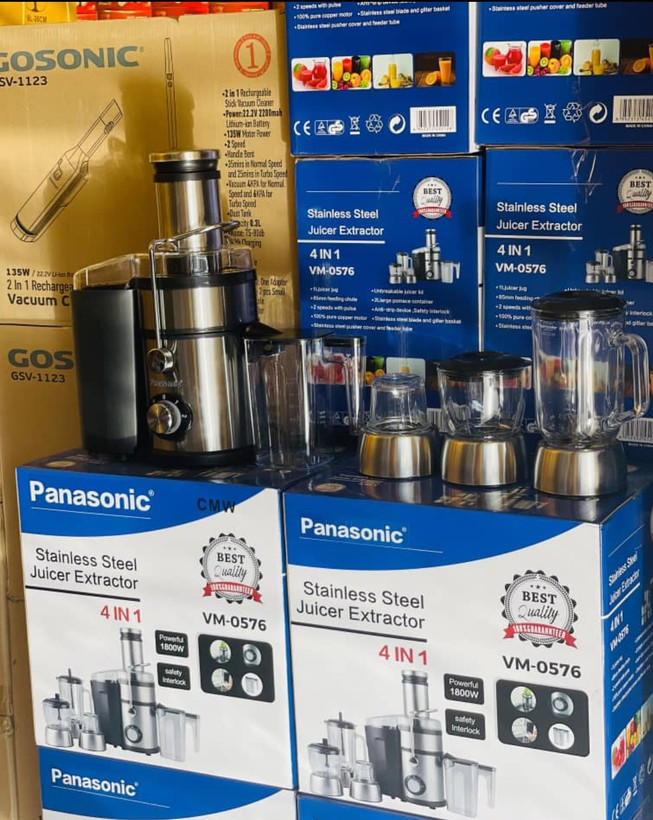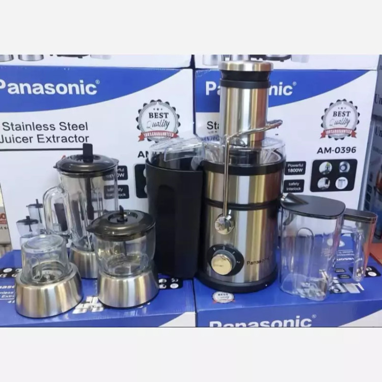 آبمیوه گیری 4 کاره پاناسونیک جنس بدنه : استیل آهنربا نگیر قابلیت عملکرد پالس گنجایش مخزن آب میوه گیری : 1.5 لیتر ظرفیت پارچ مخلوط کن : 1.2 لیتر جنس پارچ مخلوط کن : شیشه پیرکس مخزن تفاله 2 لیتر جنس تیغه (صافی)استیل تعداد تنظیمات سرعت : 2 سرعته سایز دهانه ورودی 80 میلی متر توان مصرفی : 1800 وات سوئیچ ایمنی پایه تمام استیل پایه چسبنده خوب و قوی رنگ : استیل