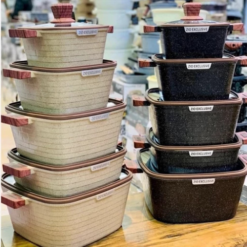 سرویس قابلمه زیو طرح جامبو مربعی 10 پارچه ZIO Z-8300 قدیم ZIO Z-7170 گرانیت سنگی ترکیه با کیفیت فوقالعاده